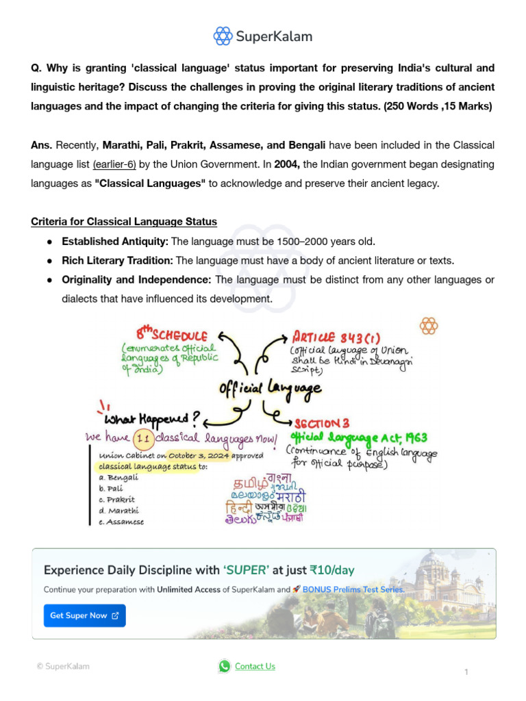 Conclusion: Granting classical language status plays a critical role in preserving India’s rich