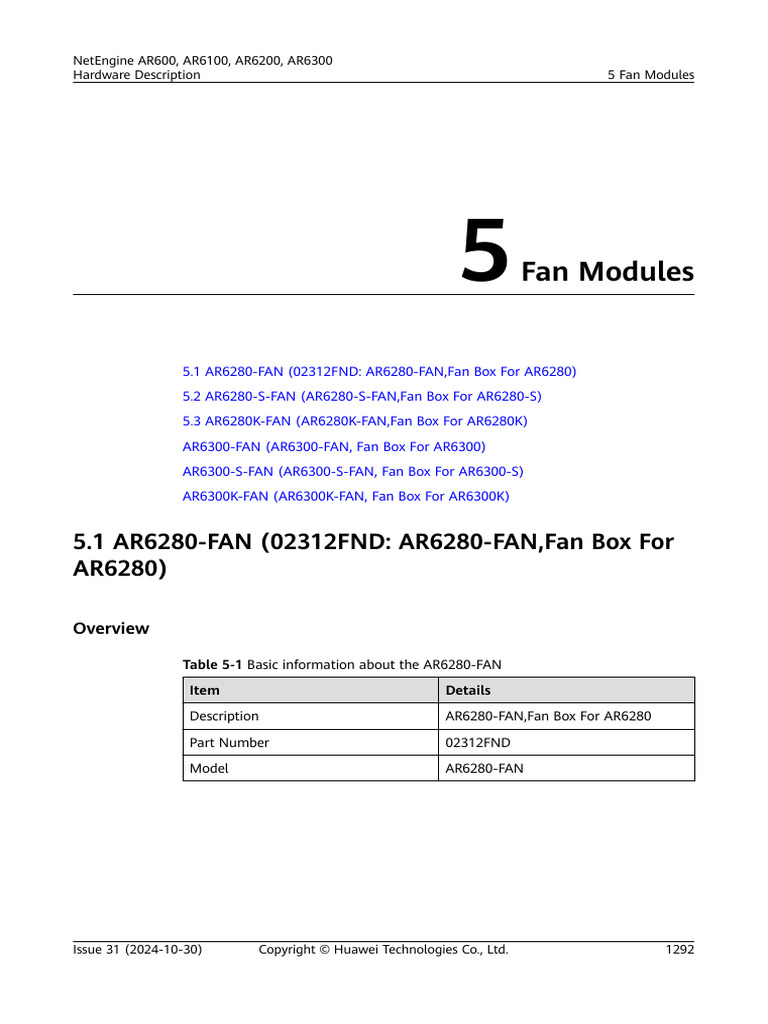 Table 5-1 Basic information about the AR6280-FAN