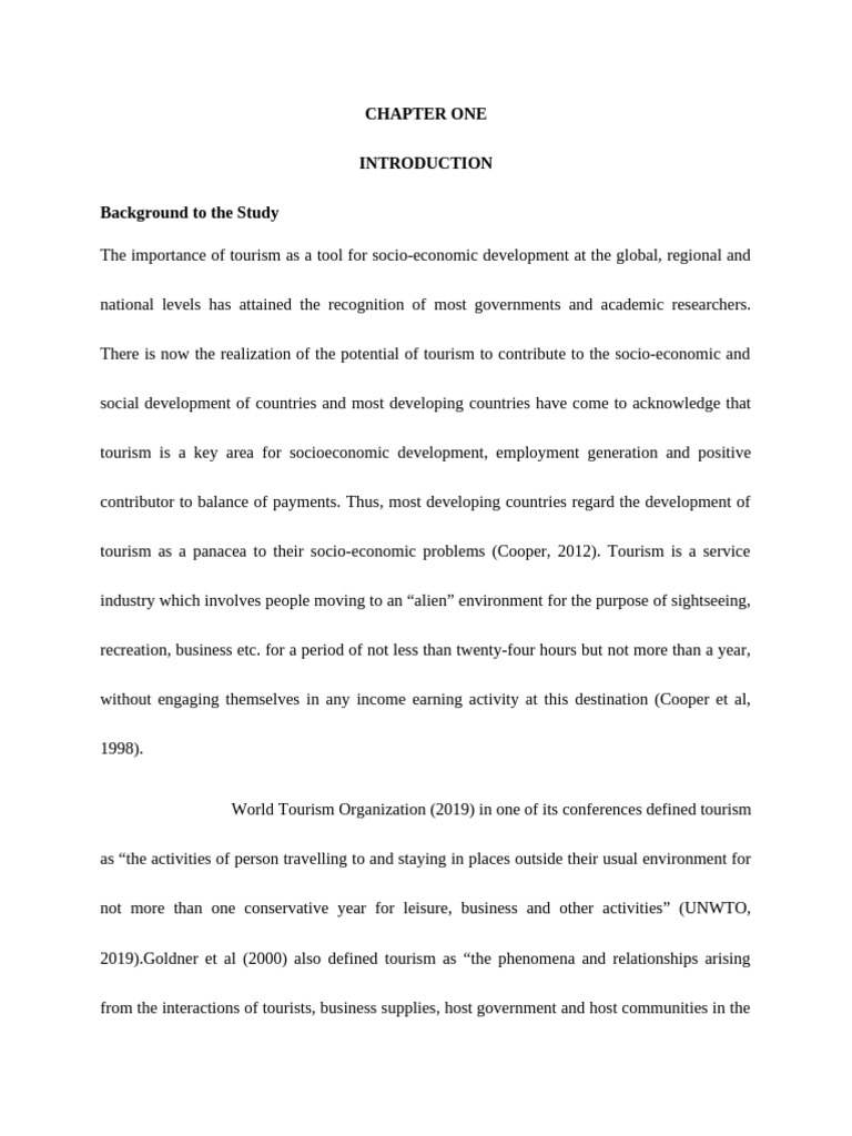 2019).Goldner et al (2000) also defined tourism as “the phenomena and relationships arising