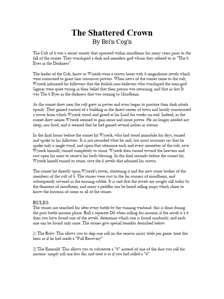 members of the cult of 6. The stones were cast to the far corners of mordheim, and