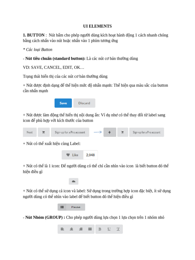 + Nút có thể sử dụng cả icon và label: Sử dụng trong trường hợp icon đặc biệt, ít sử dụng