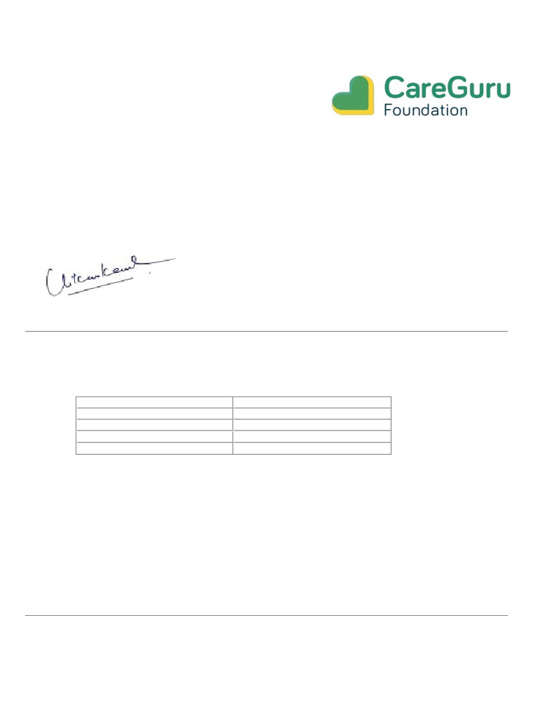 Thank you for making a contribution of Rs 1000 to CareGuru Foundation. Please keep this written acknowledgement of