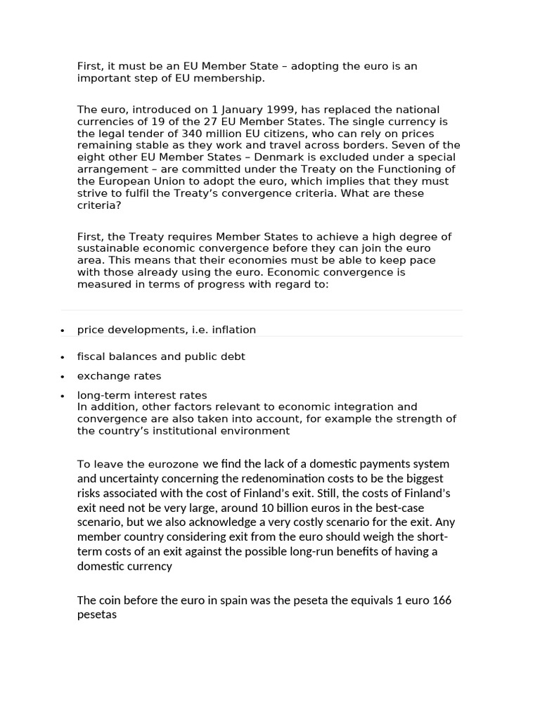 the European Union to adopt the euro, which implies that they must