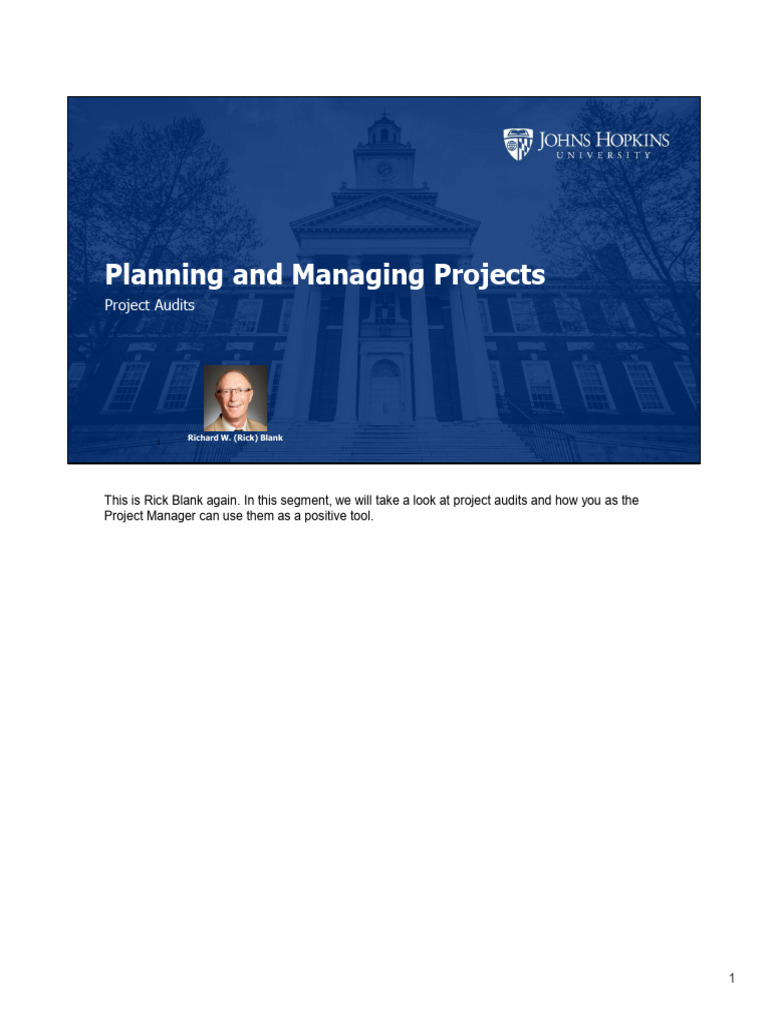 This is Rick Blank again. In this segment, we will take a look at project audits and how you as the