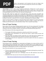 Time to coordinate and delegated work -1 A large amount of time is required for the -2 team leader to maintain effective communication for team planning, supervising and coordinating the care provided by all team members Continuity of care may be diminished because -3 of day-to-day changes in team members and leaders Because each members of the team is assigned -4 specific tasks for the patients and no one considers the total patient, team nursing does .not allow for a holistic view of the patients