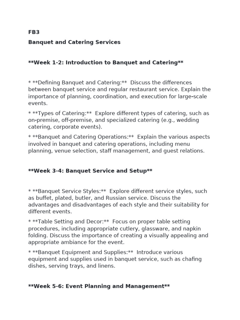 * **Career Opportunities in Banquet and Catering:** Explore various