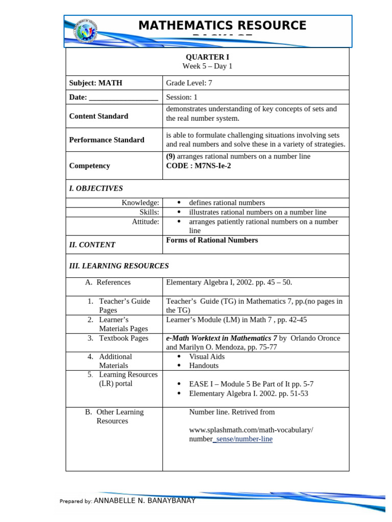2. Learner’s Learner’s Module (LM) in Math 7 , pp. 42-45