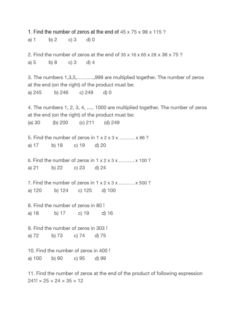 32. Find the numbers of zeros at the end of 11 x 22 x 33 x 44 x 55 x 66 x………. x 100100