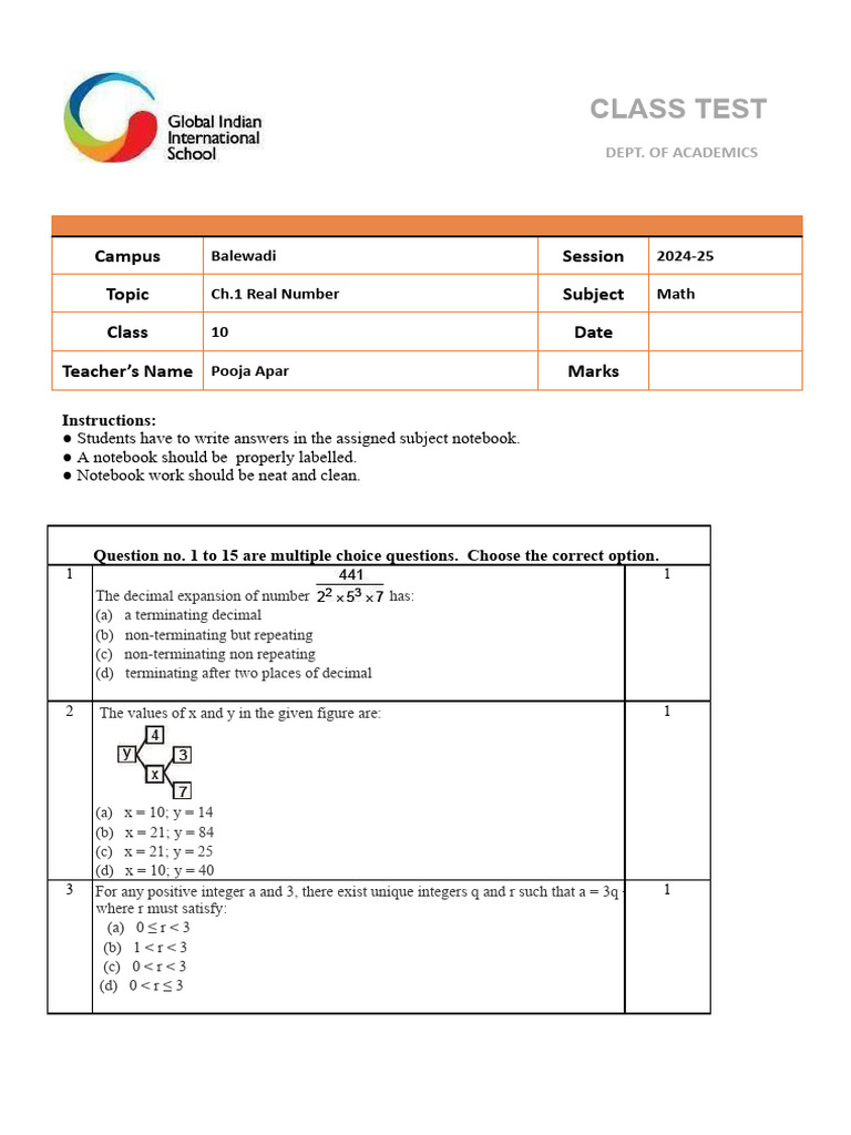 Topic Ch.1 Real Number Subject Math