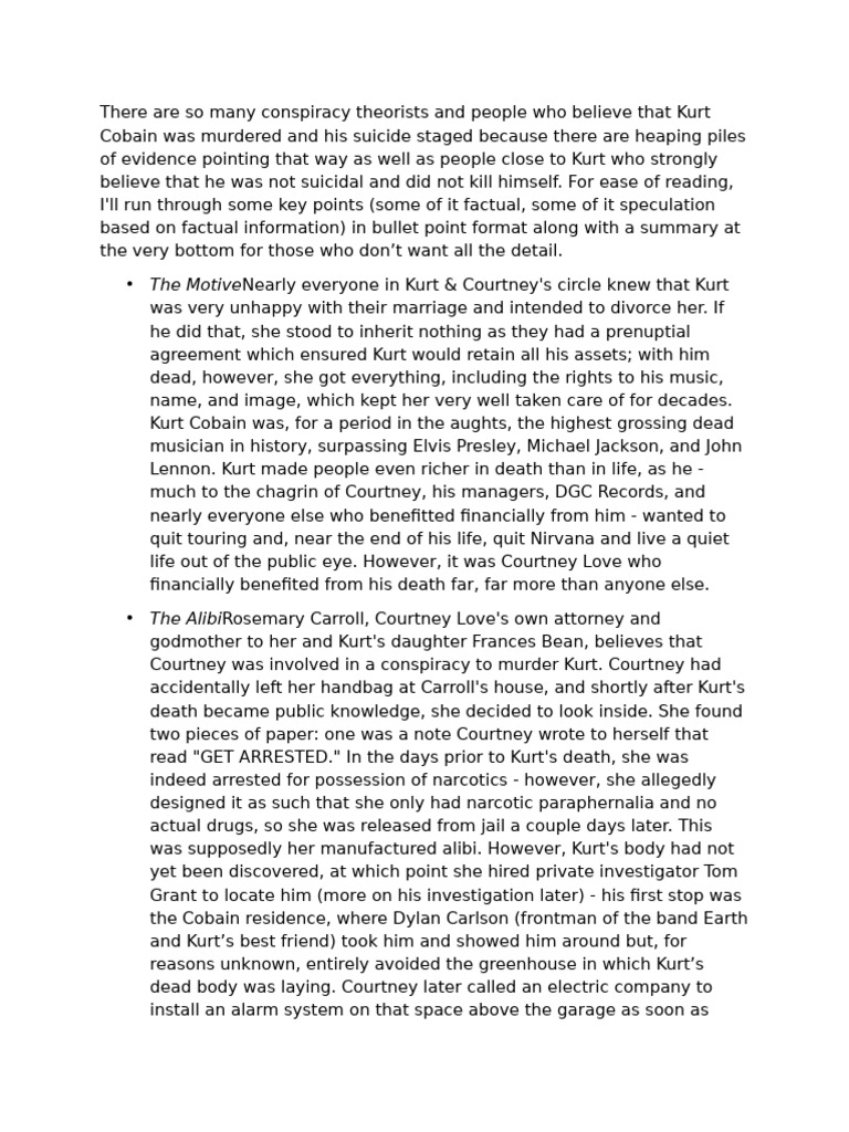 paragraphs up as well as the website Justice For Kurt Cobain