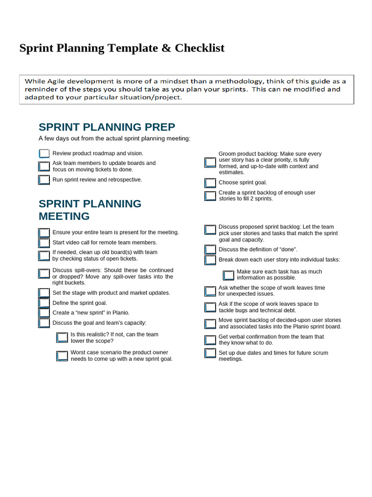 Sprint Planning Template & Checklist