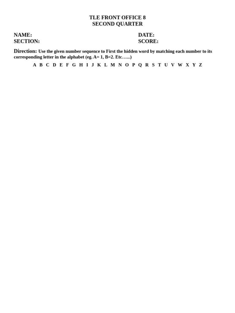 Direction: Use the given number sequence to First the hidden word by matching each number to its