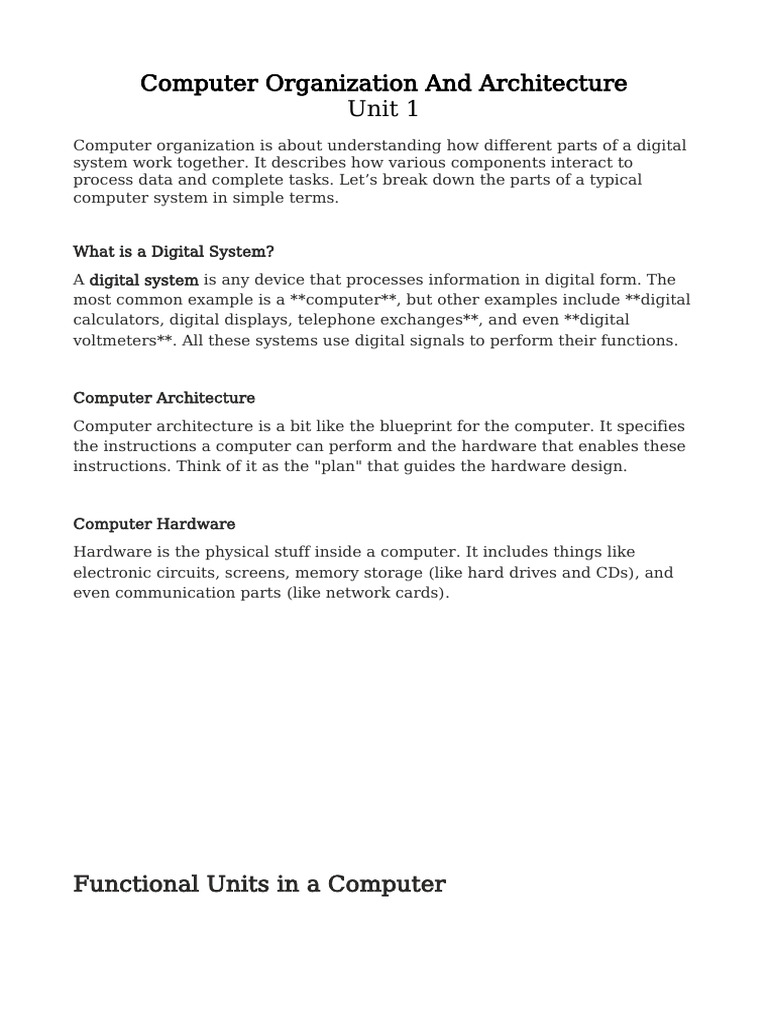 Computer organization is about understanding how different parts of a digital