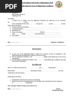 APPLICATION FORM FOR INTER UNIVERSITY MIGRATION CERTIFICATE