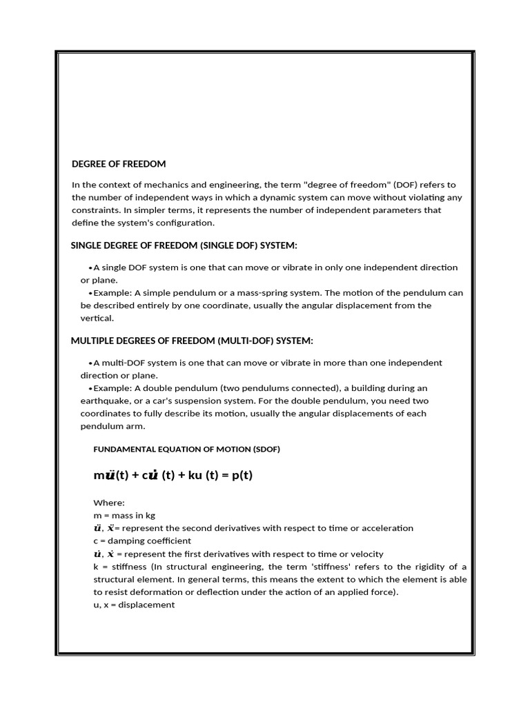 SINGLE DEGREE OF FREEDOM (SINGLE DOF) SYSTEM: