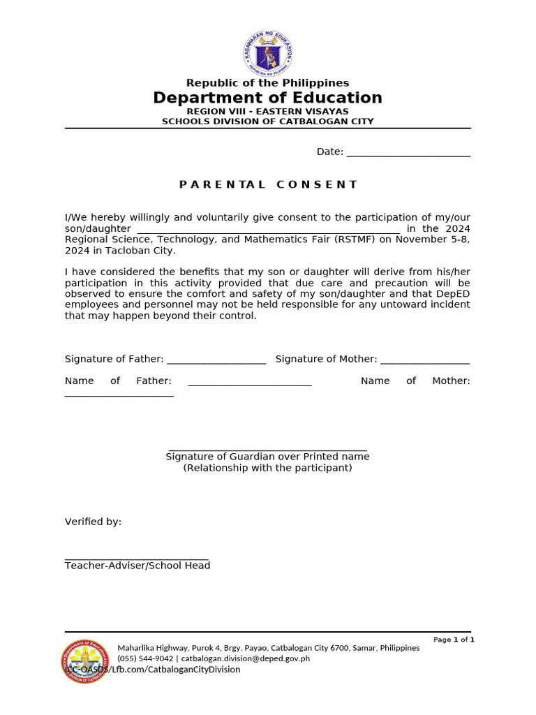 I/We hereby willingly and voluntarily give consent to the participation of my/our