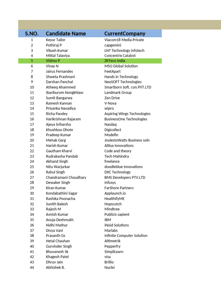 Candidate Name CurrentCompany