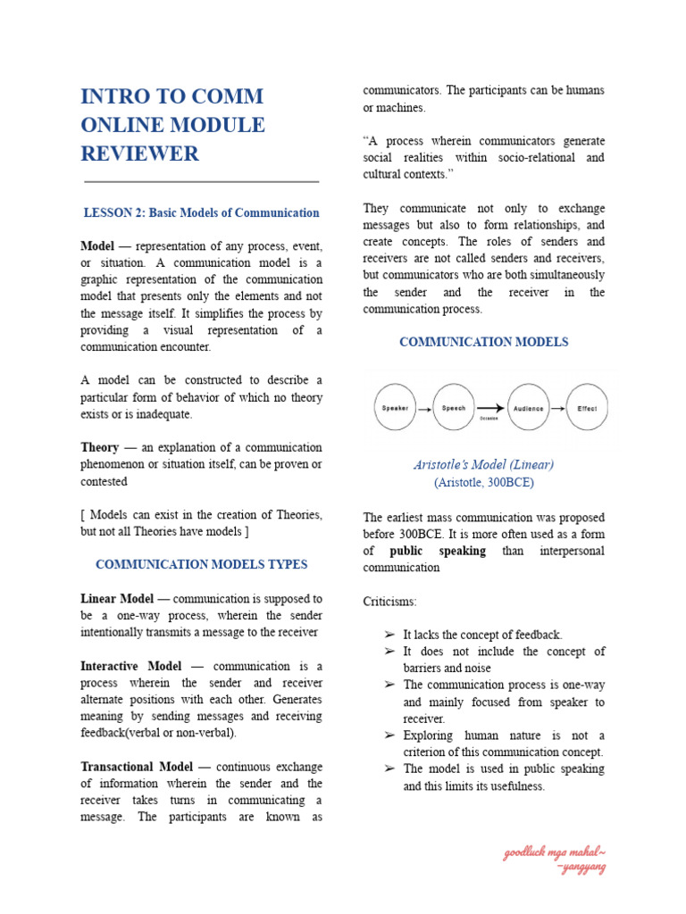 LESSON 2: Basic Models of Communication They communicate not only to exchange