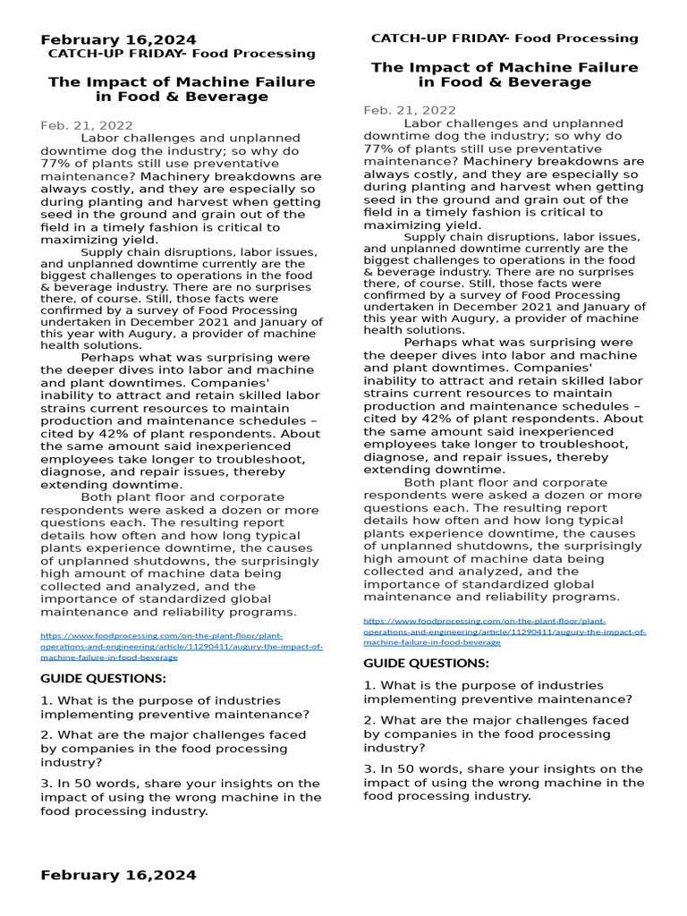 February 16,2024 CATCH-UP FRIDAY- Food Processing