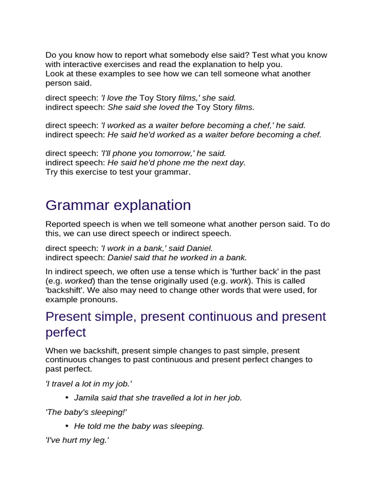 (e.g. worked) than the tense originally used (e.g. work). This is called
