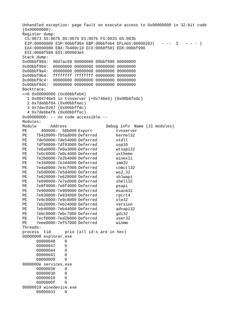 1 0x004746e5 in tvnserver (+0x746e4) (0x00bbfedc)