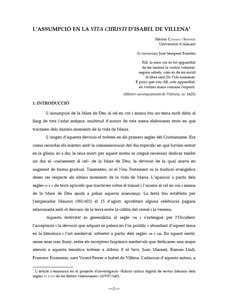 L’article s’emmarca en el projecte d’investigació «Edició crítica digital de textos literaris dels