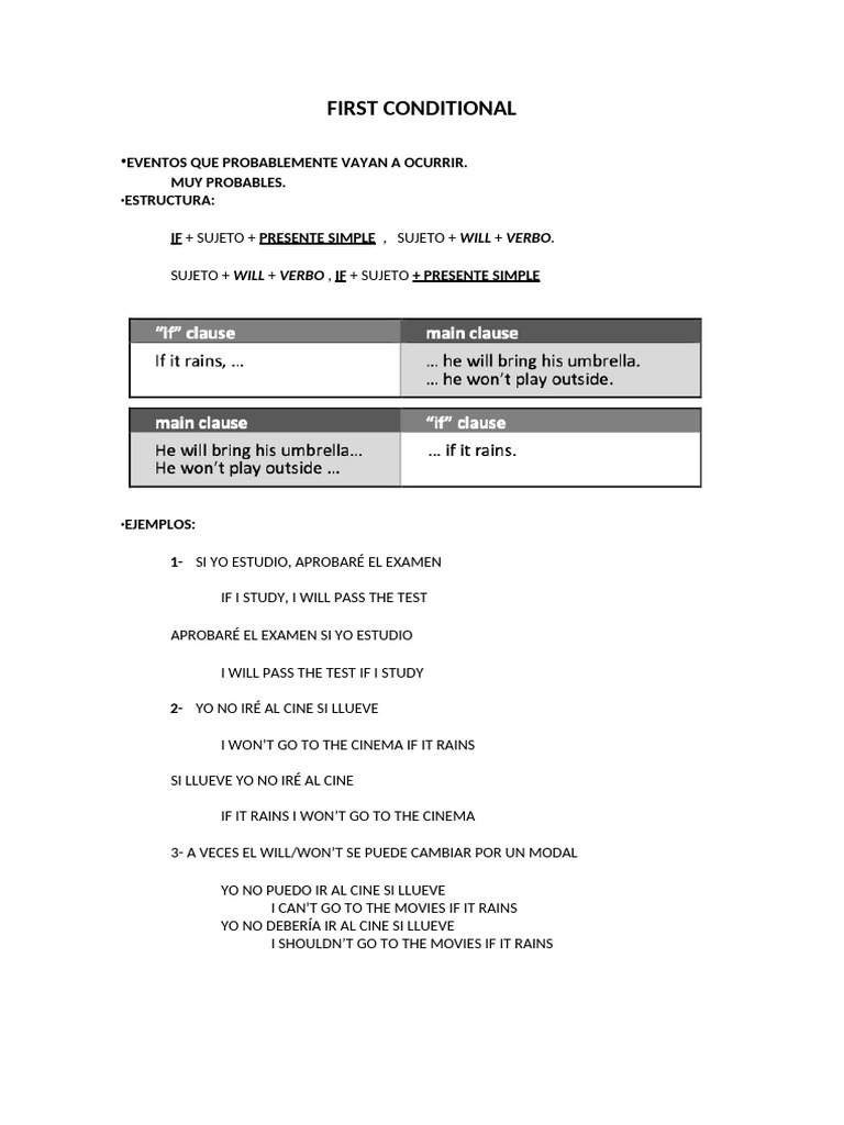 IF + SUJETO + PRESENTE SIMPLE , SUJETO + WILL + VERBO.