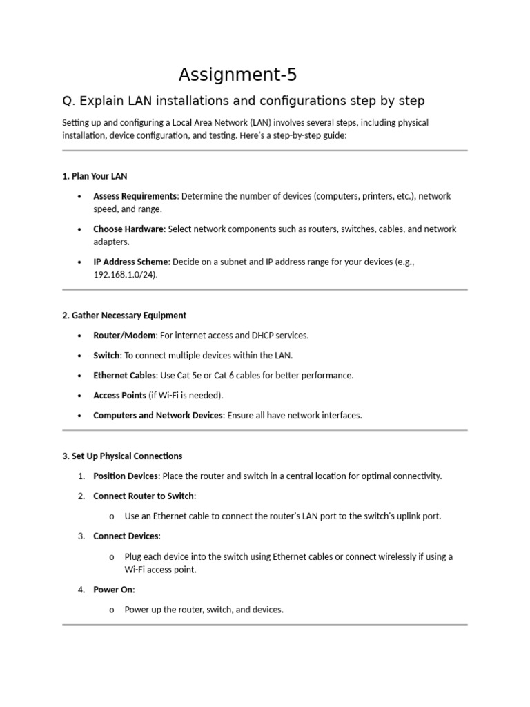 Setting up and configuring a Local Area Network (LAN) involves several steps, including physical