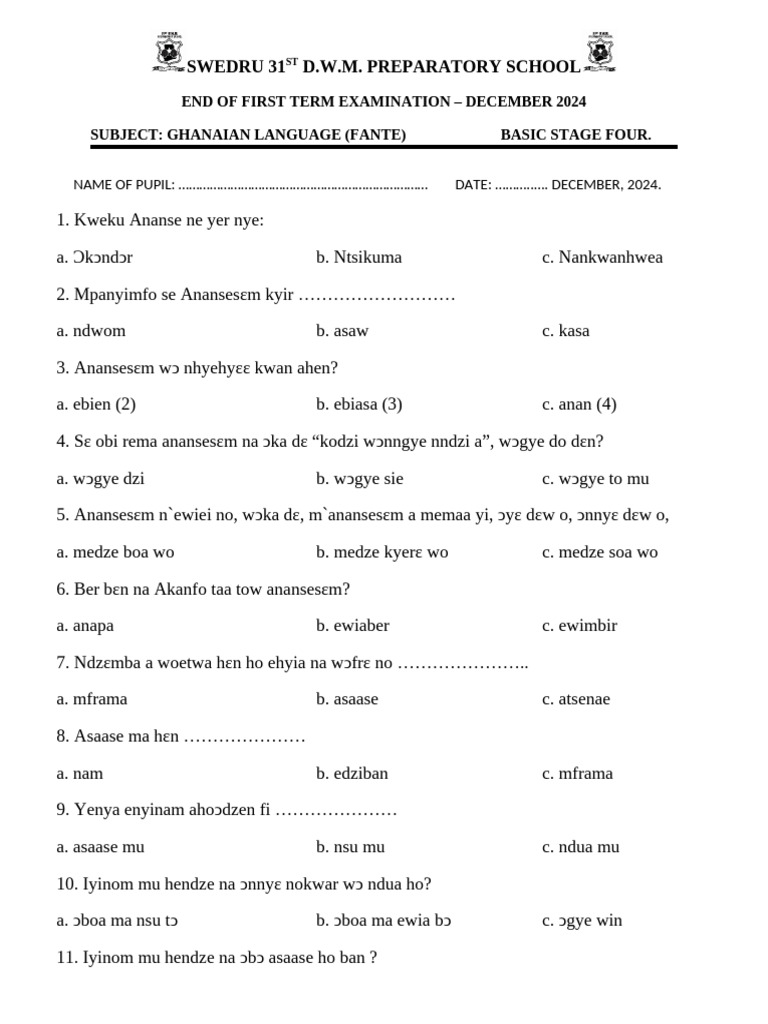 SUBJECT: GHANAIAN LANGUAGE (FANTE) BASIC STAGE FOUR.