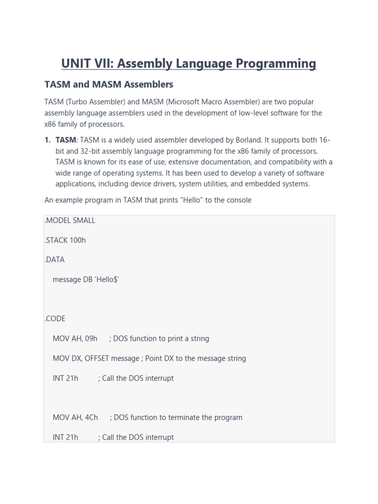 UNIT VII: Assembly Language Programming