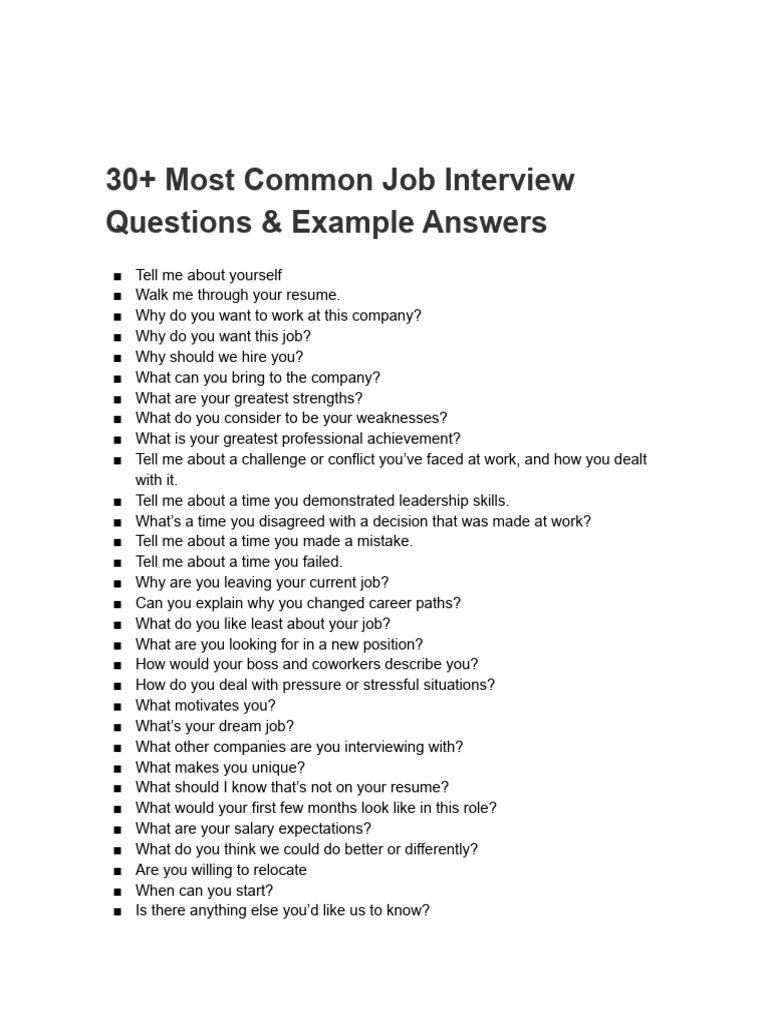 30+ Most Common Job Interview