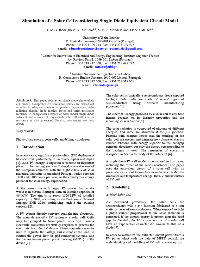 solar cell and a model of single-diode solar cell with a series instant depends on its intrinsic properties and the