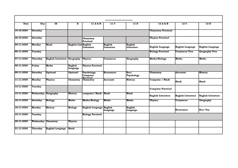 Date Day IX X 11 A & B 11 C 11 D 12 A & B 12 C 12 D