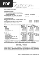 The document contains 14 multiple choice questions about mergers and acquisitions. It discusses topics such as merger tactics, reasons for merger activity, types of mergers, incorporating interest expenses into merger analysis, estimating post-merger betas, calculating weighted average cost of capital for merged firms, and valuing potential acquisitions using net present value. The questions provide examples involving companies in industries such as auto parts, pizza, and cleaning supplies acquiring smaller rivals.