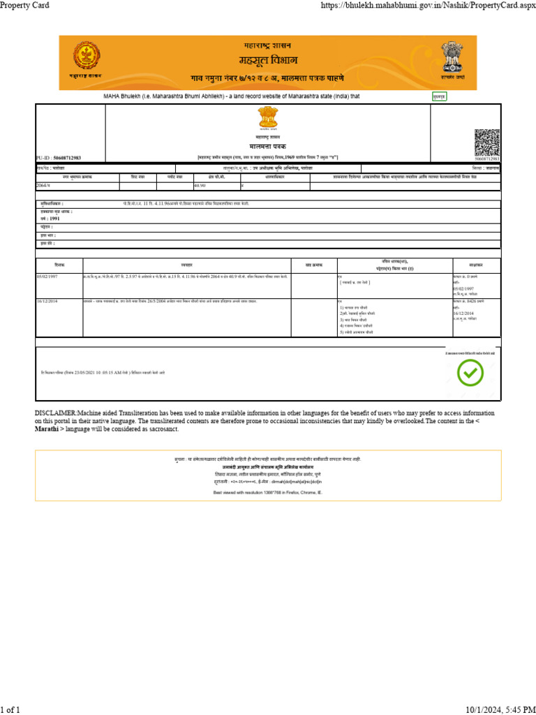 Property Card https://bhulekh.mahabhumi.gov.in/Nashik/PropertyCard.