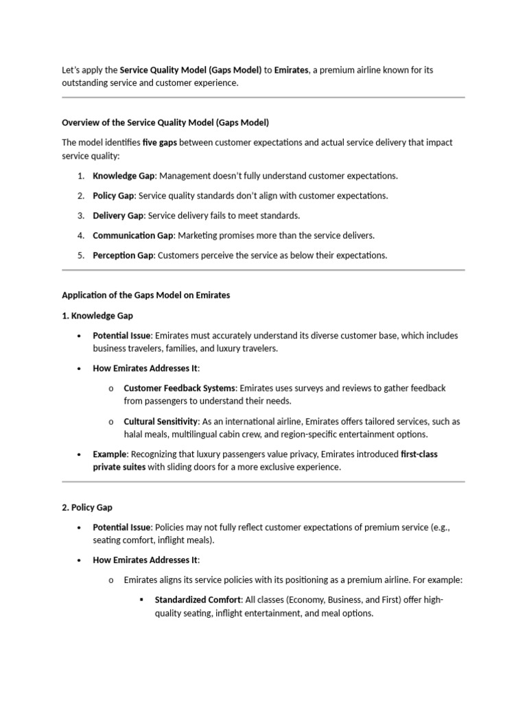 By addressing each gap, Emirates ensures that its service quality aligns with its reputation as a premium