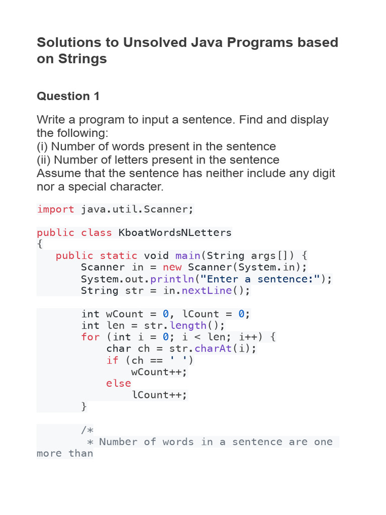 Solutions to Unsolved Java Programs based