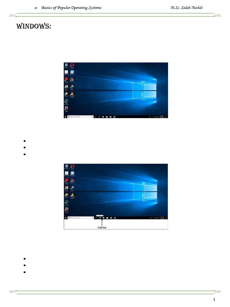 a- Basics of Popular Operating Systems M.Sc. Salah Mahdi