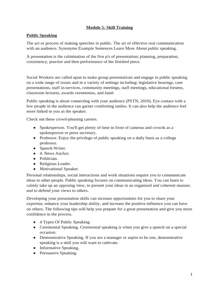 ideas to other people. Public speaking focuses on communicating ideas. You can learn to