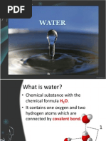 A molecule of water (H2O) is made up of one oxygen atom (O) joined to two hydrogen