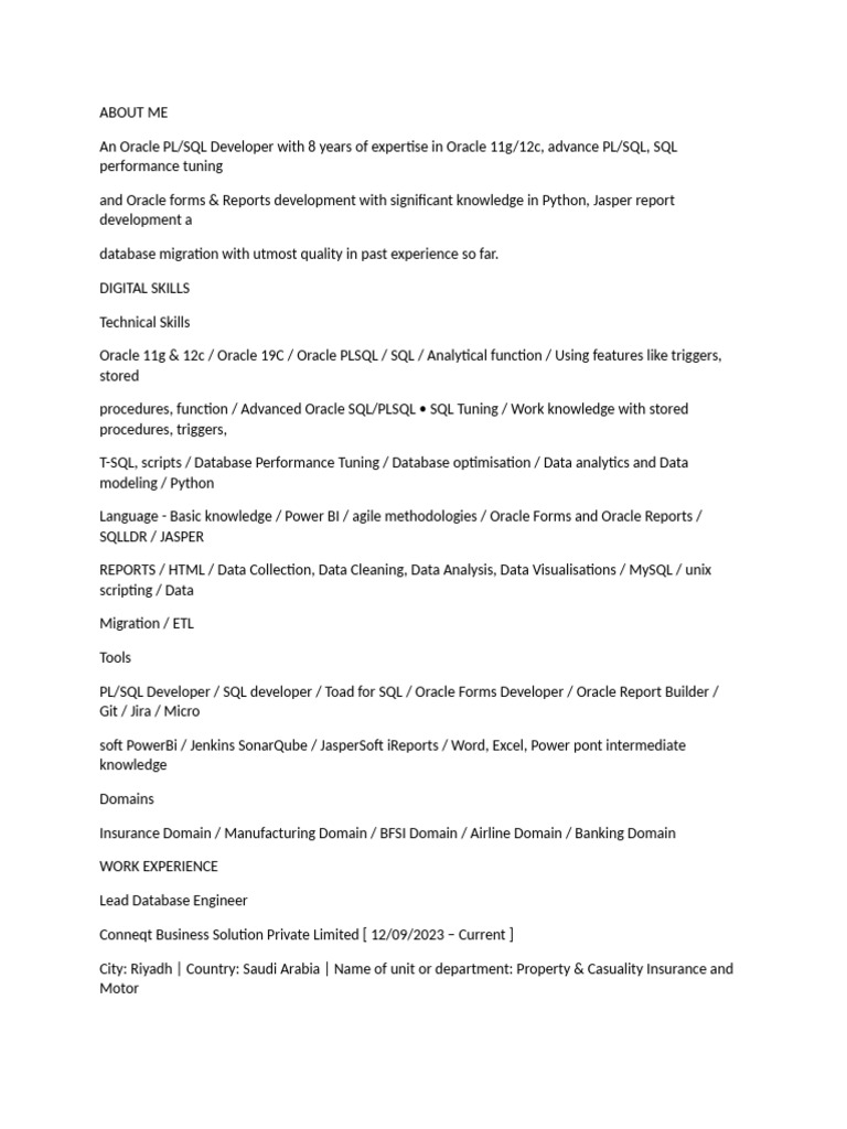 An Oracle PL/SQL Developer with 8 years of expertise in Oracle 11g/12c, advance PL/SQL, SQL