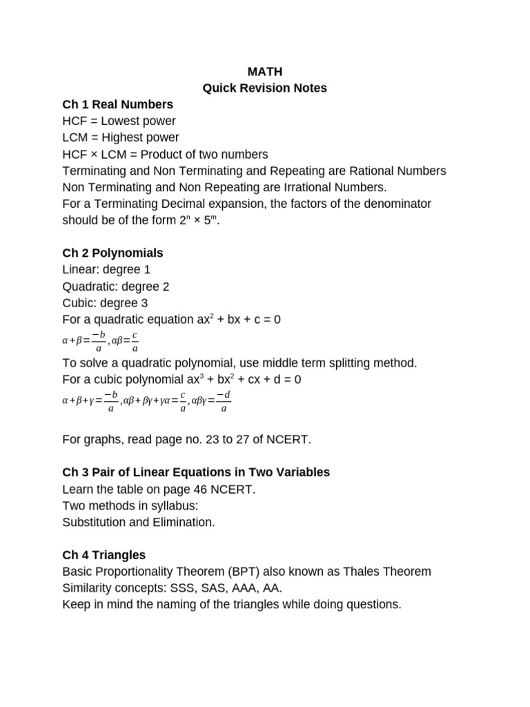 Quick Revision Notes
