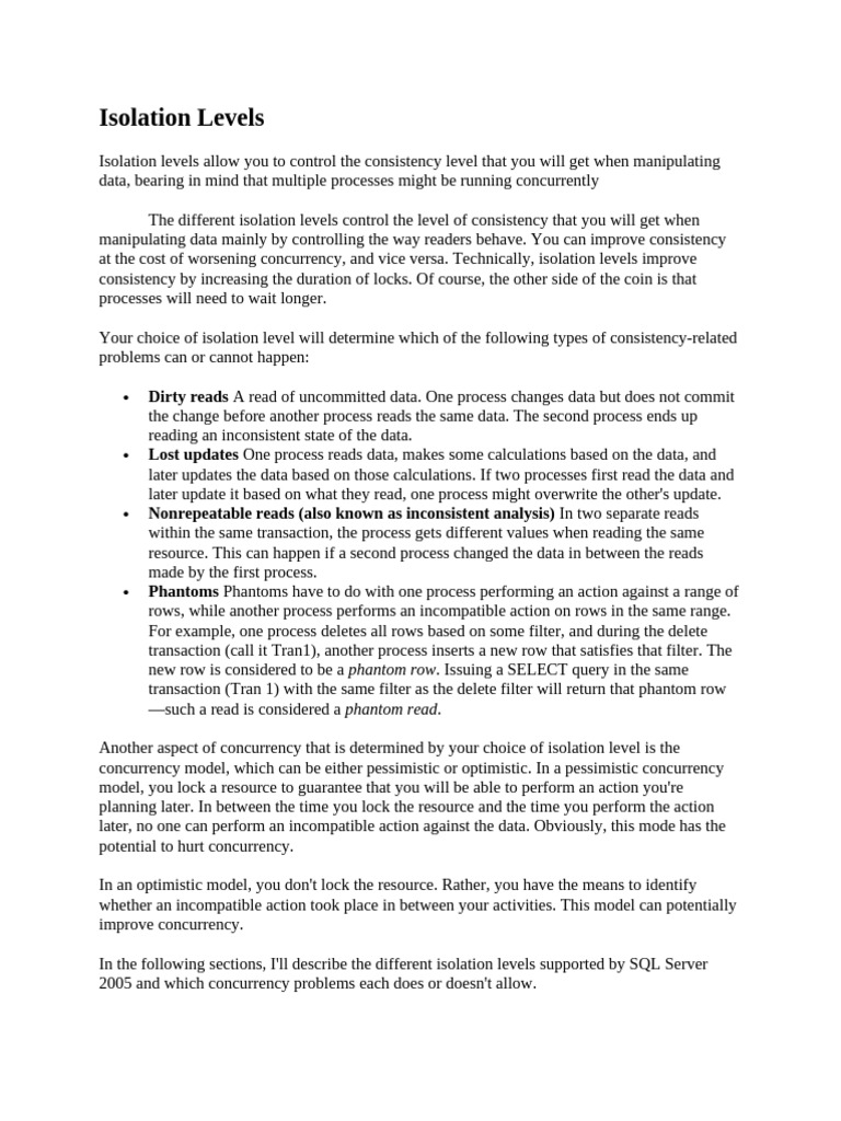 at the cost of worsening concurrency, and vice versa. Technically, isolation levels improve