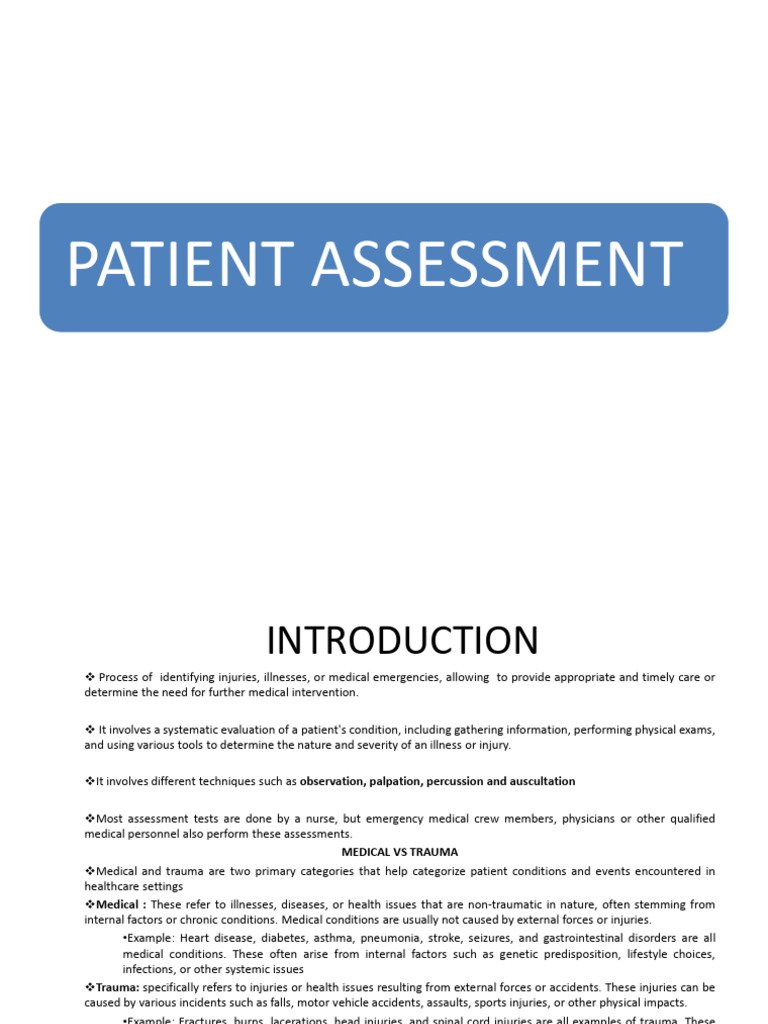 1. Observation: Take in the environment, noting any potential hazards or clues about the patient's condition.