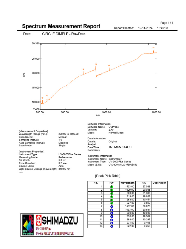 Wavelength Range (nm.): 200.00 to 1600.00 Mode: Normal Mode