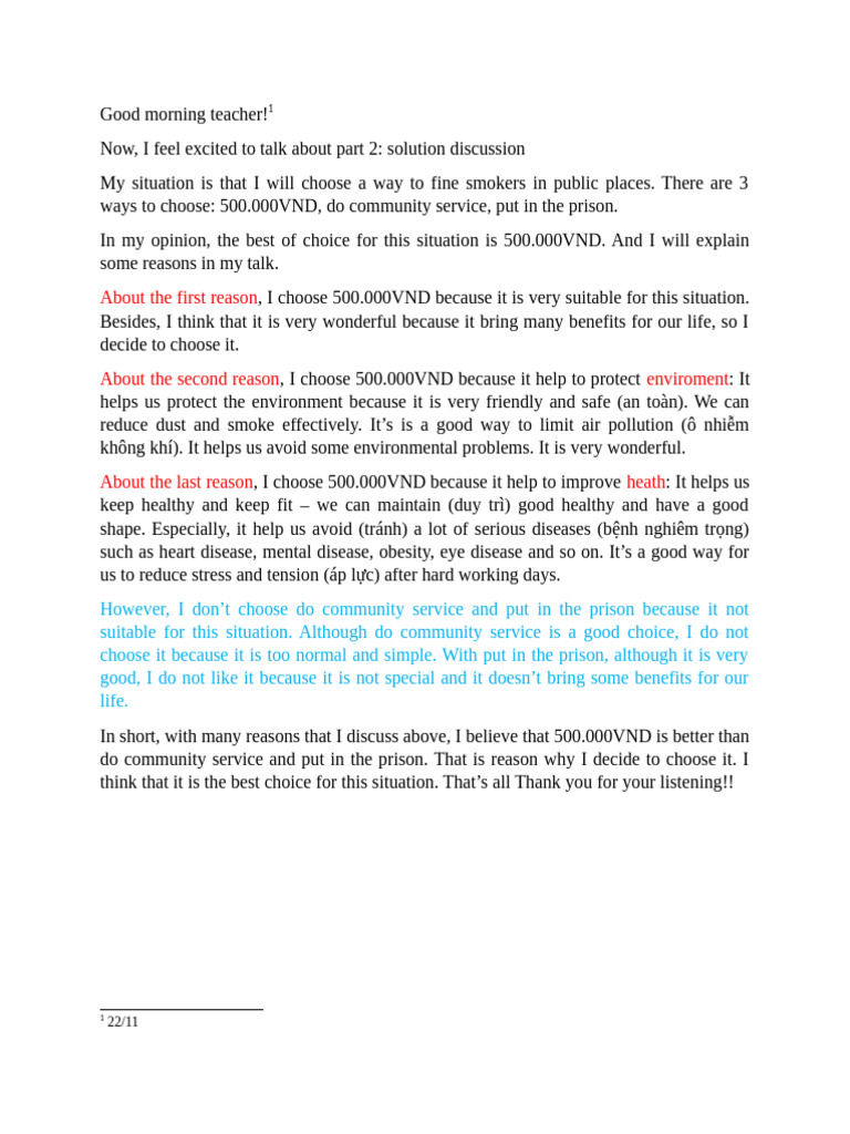 that it is the best choice for this situation. That’s all Thank you for your listening!!