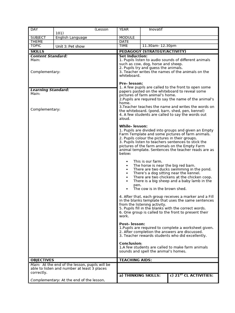 DAY Wednesday (Lesson YEAR 1 Inovatif