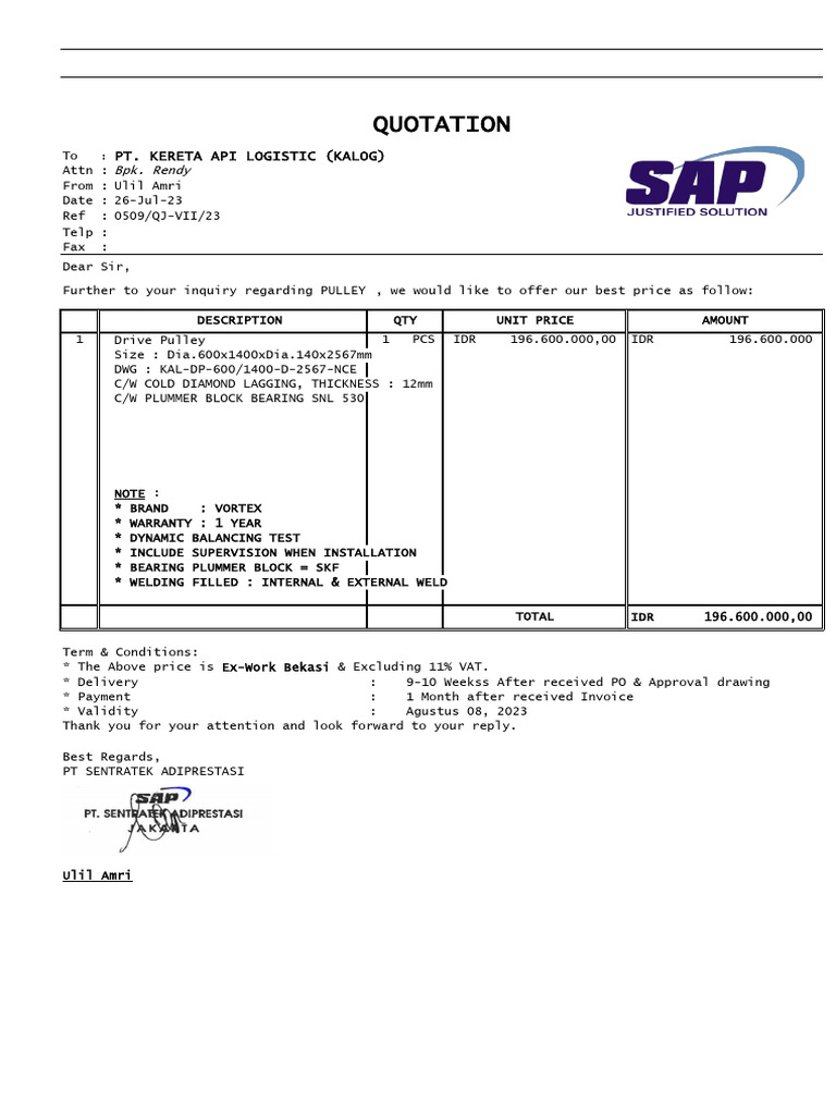 1 Drive Pulley 1 PCS IDR 196.600.000,00 IDR 196.600.000