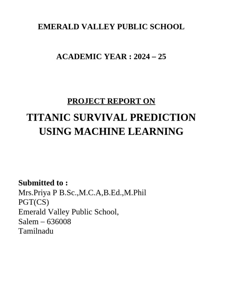 SURVIVAL PREDICTION USING MACHINE LEARNING” in