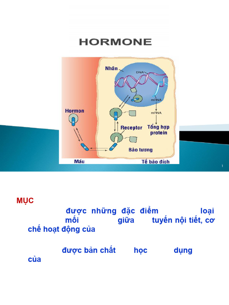 - theo cơ chế tác dụng (hormone gắn với thụ thể trên